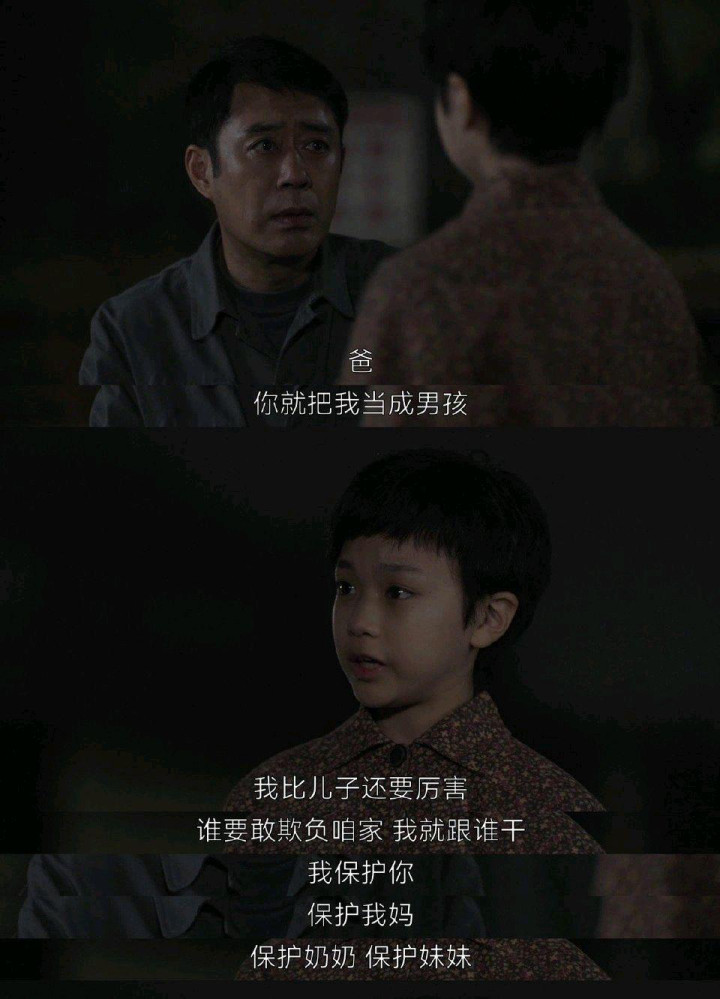 父亲看到剪掉辫子的家丽,问她剪头的原因。家丽倔强说,自己可以不嫁人,就要保护咱家!父亲看着小家丽坚定的眼神,眼睛里面也闪烁着泪花,他从来都没有想到自己的女儿可以如此乖巧和听话,小小的年龄就已经有了大大的心事,懂事的令人心疼。